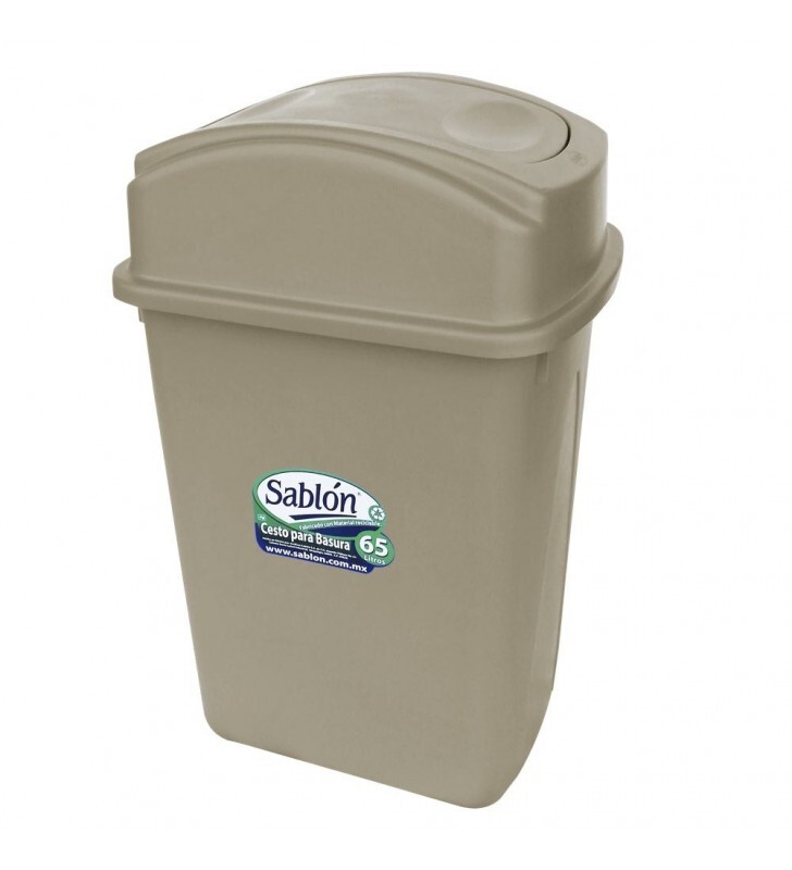 El Bote de Basura Sablón de 65 litros capuchino está fabricado con polipropileno copolímero de trabajo pesado, ofreciendo excelente resistencia y durabilidad, ideal para el uso diario.