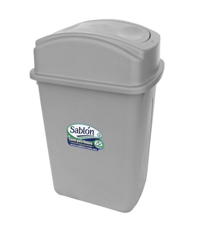 El Bote de Basura Sablón de 65 litros gris está fabricado con polipropileno copolímero de trabajo pesado, ofreciendo excelente resistencia y durabilidad, ideal para el uso diario.