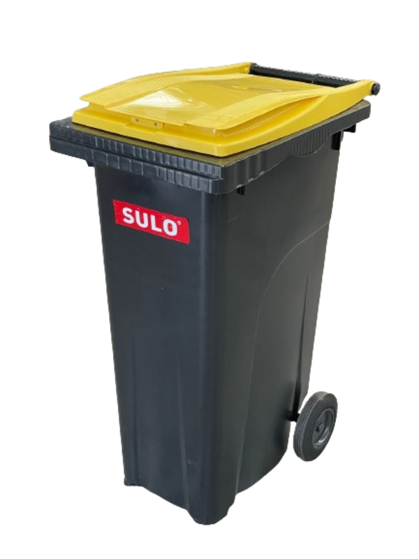 Bote de Basura de 180 Litros SULO Negro con Tapa Amarilla