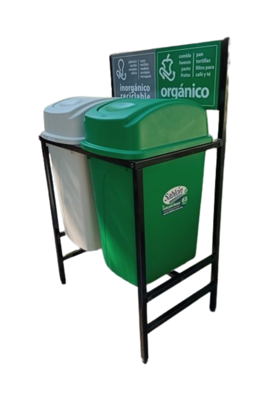 Incluye una estructura de metal pintada en color negro con etiquetas en la estructura para identificar claramente el tipo de desecho.